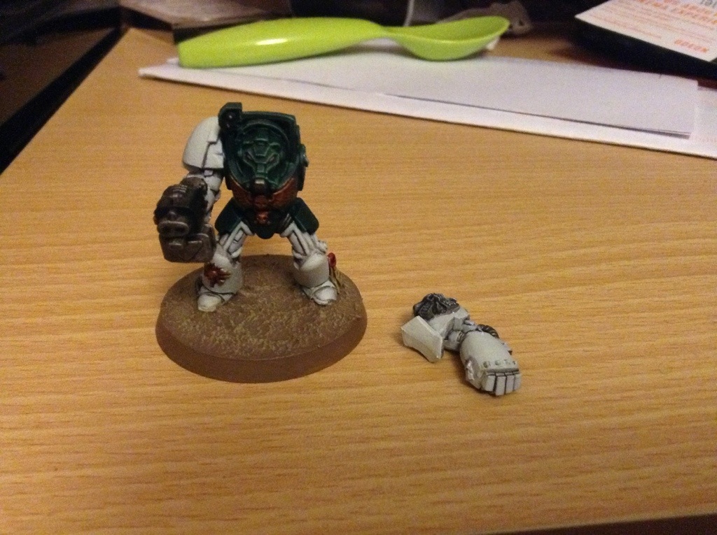 Sadly, there was also a real life casualty, as I dropped my Captain when putting him away in my carry case. He was clearly so angry at the poor showing of the Terminators, that it would appear his Power Sword sliced right through one of them.