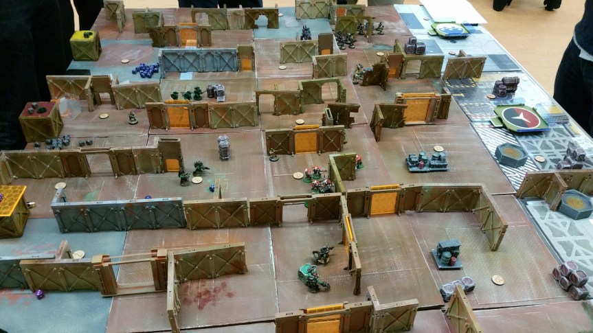 Previous games have all been set upon a Space Hulk and teams of players have had to work together to claim the center ground, destroy statues or grab crates, all while dealing with exploding zombie hordes, killer sentry gun robots or the dreaded Squares of Dispair (where a random tile is picked and any model on it has to take a dangerous terrain test – brutal for t-shirt wearing Orks).