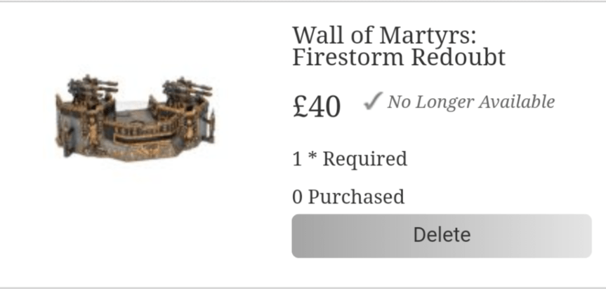 Interestingly, the Wall of Martyrs: Imperial Bunker is out of stock on the website. Is that going to disappear or are they just waiting for new stock? How comes the Firestorm Redoubt didn’t get the same treatment?