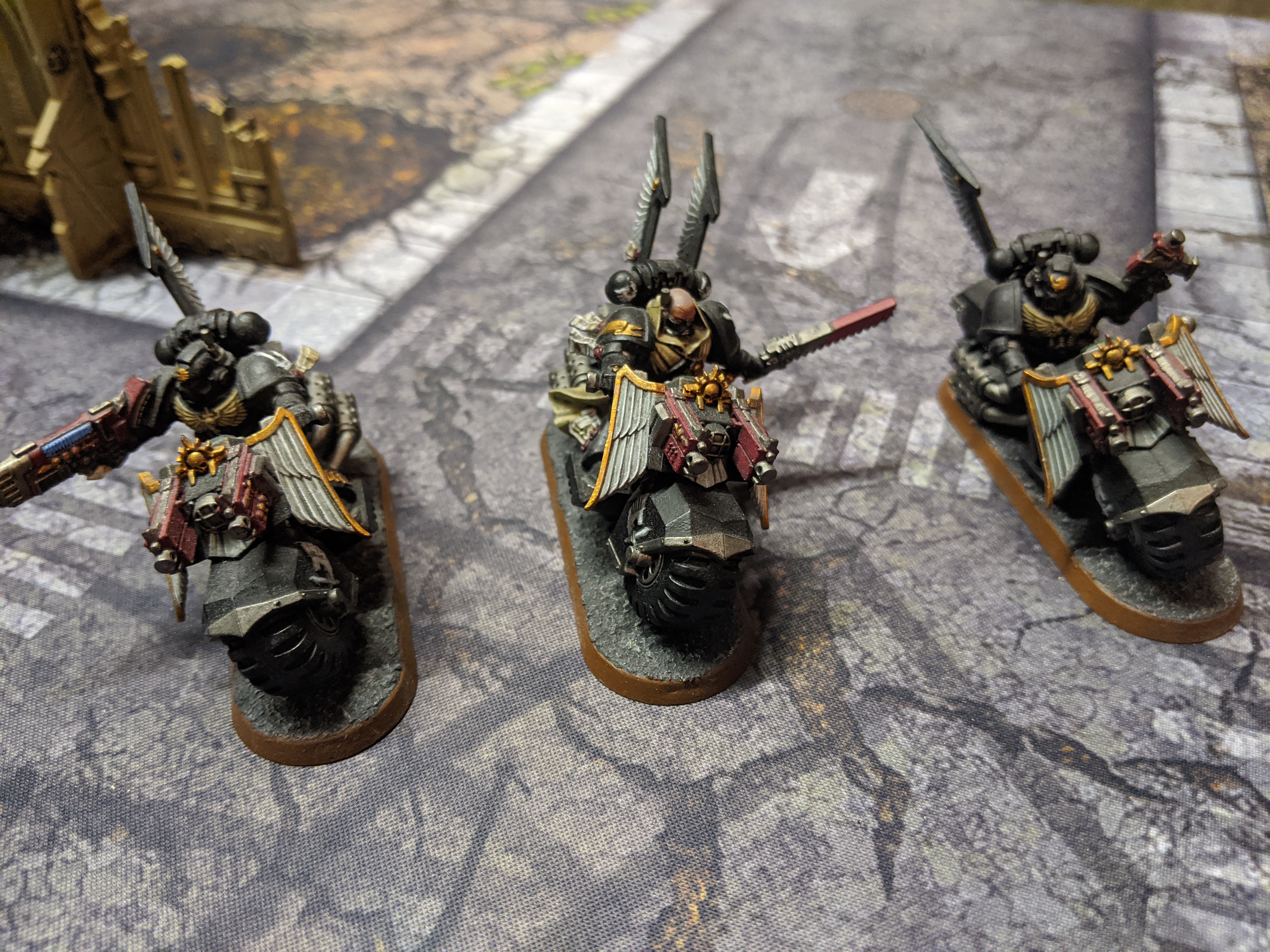 They are a squad of three Ravenwing bikers consisting of a Sergeant with a chainsword, a biker with a bolt pistol and a biker with a plasma gun.