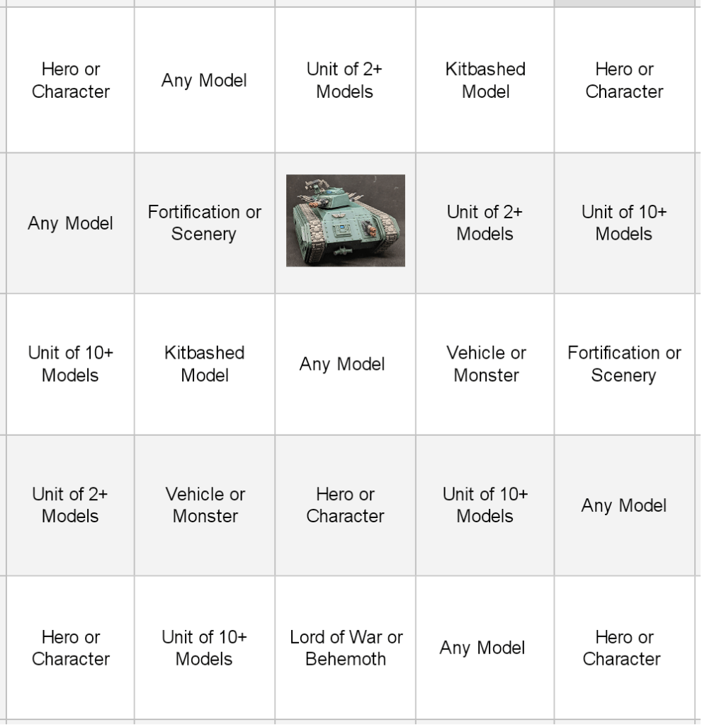 In recent years (possibly every year?), White Dwarf magazine has produced some sort of plan to encourage hobbyists to get their projects completed over the course of a year. This year’s attempt is a form of Hobby Bingo. Essentially there are 25 boxes in a grid. Each box contains a hobby task to complete over the course of the year.