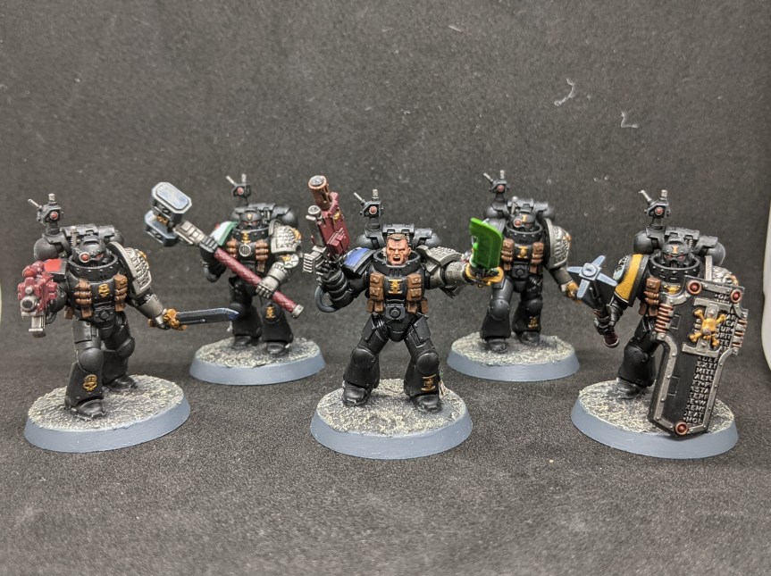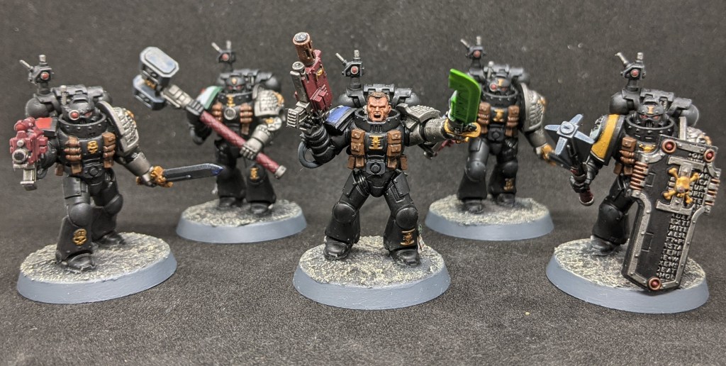 I had a thought that I would be able to get some Deathwatch models painted really quickly. In reality it took longer than planned as other projects took my interest and I hit “the wall” with these guys, but once I finished one of them and finalised how I was going to paint all the different parts, the rest finished up soon after.