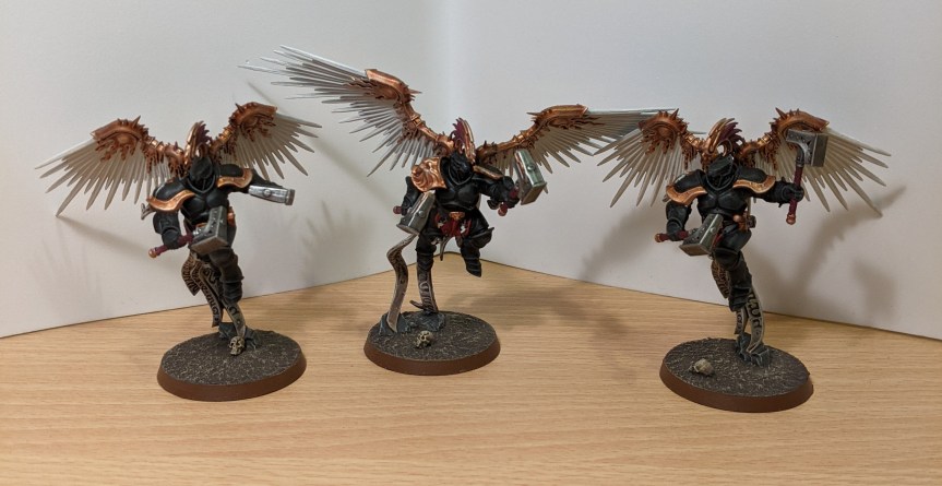 I’m pleased with how these guys turned out, but the idea of painting the wings filled me with dread and so I kept putting off painting them. In the end they weren’t too bad, just a little time consuming.