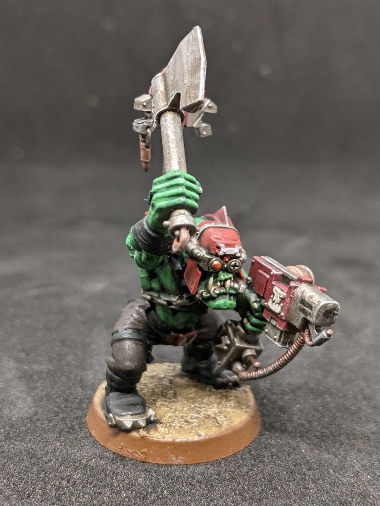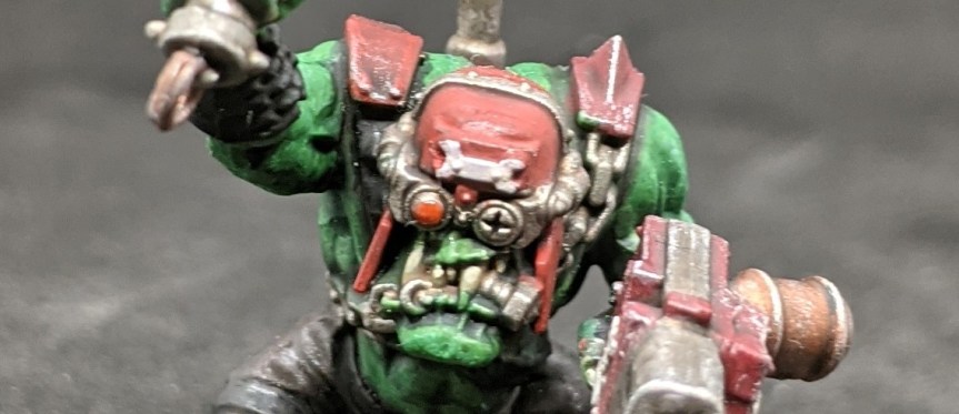 Long story short, I had to paint up a new Mek as I didn’t have the points for him to have a killsaw like the one I have is modelled with. I therefore painted up a Mek I had kitbashed a long time ago with his “custom” Kustom Mega-slugga.