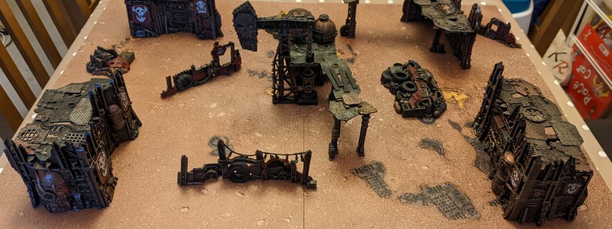 While the version I’m aiming to play will be using different rules (Kill Team 2018) the premise of a kill team attacking Da Red Gobbo at his place of work will be central to it. Therefore Da Red Gobbo needs his own little grotto. Enter Kill Team Octarius terrain.