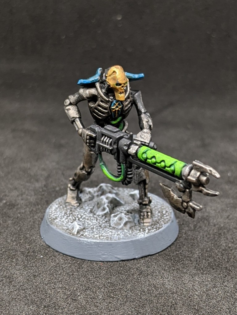The Necrons were painted in the colours of the Nihilakh Dynasty, but skipping some of the steps that I used on my own models.