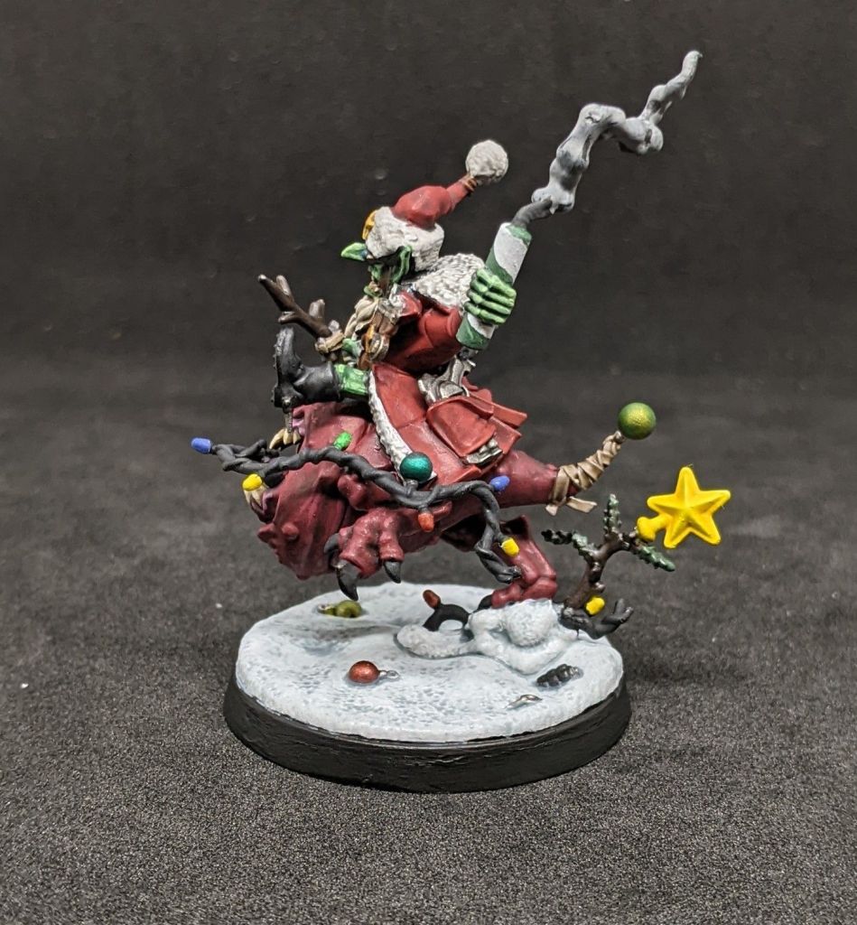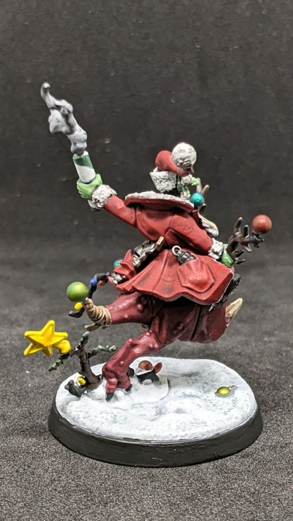 This year’s challenge was set to the theme of giving. So a model that gives out buffs to other units. As it’s a Christmas Challenge, participants are encouraged to make their model “Christmassy”. This could be as little as putting them on a snow base or painting lights to look like Christmas lights.