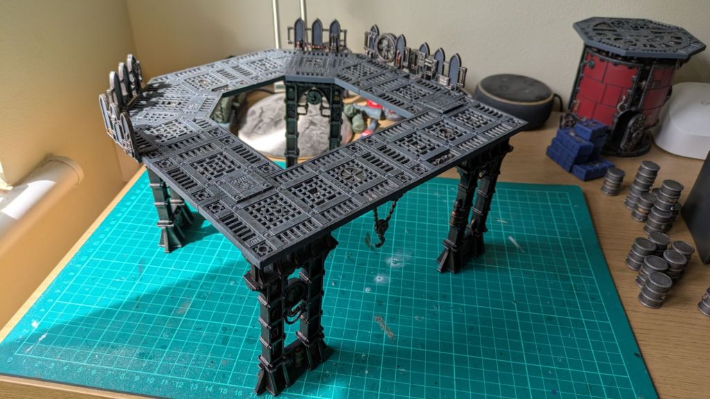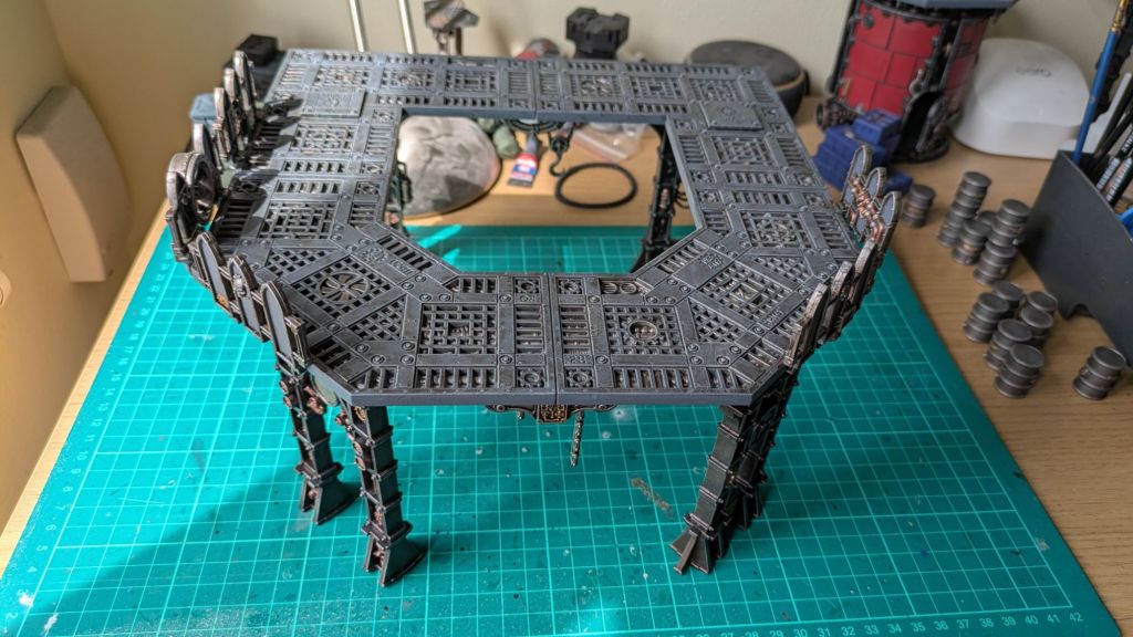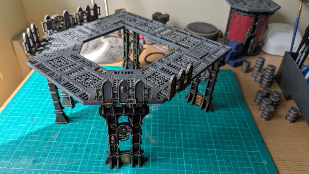 I’ve had this piece of Sector Mechanicus Terrain sat on my desk for months. I had started painting it but then hit the wall with no time or motivation to get it finished. The idea of picking out all of the walkway parts and leaving the silver in the recesses filled me with dread.