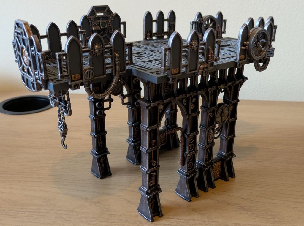 This piece of Sector Mechanicus terrain comes in several parts and was built to match a tower that was used in a Necromunda Battle Report way back in the December 2017 issue of White Dwarf.